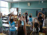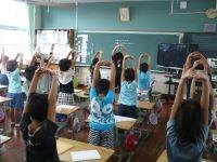 どんなストレッチをするのか、健康委員会の子どもたちが放送をしました。そして、放送に合わせて各教室で全児童が取り組みました。各教室では、体育委員会の子どもたちがお手本となってくれました。