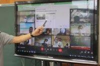 情報教育担当職員の指導のもと、GoogleMeet(グーグルミート)を活用した授業の方法について、①黒板やホワイトボードをそのまま使う方法 ②画面を共有する方法 など、基本的なことを学びました。