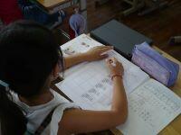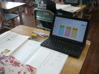 6年生は、算数の学習で「比のもう一方の値の求め方」を考えていました。chromebook(クロームブック)は机の上に道具として置きながら、ワークシートを使って求め方を考え、練習問題に取り組んでいました。多様な方法を活用して、集中して学習に臨む丸野っ子です。