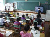 9月15日(水)に、4年生は水辺調査の講話がありました。汚れた水をきれいにするために、どれだけの量の水が必要になるのか「お風呂の水の量の何杯分になる?」というようなお話等がありました。