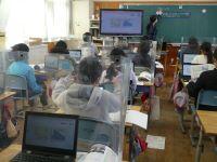 今日6年生は社会の学習がありました。海外について調べ、まとめたことを一人ひとりが発表する活動に取り組んでいました。発表の仕方は、クロムブックを活用し、オンライン方式でした。発表する子どもは、画面に発表資料を映しながら自分の席に座ったまま、プレゼンを行いました。内容も大変詳しく調べられたもので、自分の考えも盛り込んだものでした。聞いている子どもたちは、イヤホンから聞こえる声と画面に映し出される資料を見ながら聞くというスタイルでした。発表の最後に、担任から聞いている子どもたちに質問がありました。その質問に、堂々と答える子どもたちの姿がありました。集中して発表し、集中して聞いている丸野っ子です。