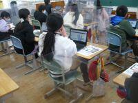 今日5年生は外国語の学習がありました。「普段、どんな家事をしていますか。?」の質問に応える学習内容でした。黒板に掲示しているカードが見やすいように、クロムブックで撮影して間近でカードを見る工夫をしていました。そして、その画像を見ながら各自が練習する姿がありました。外国語にも意欲的に取り組んでいる5年生でした。