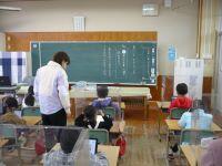 今日1年生は、国語の学習がありました。ワークシートを使って、黒板に書かれたことを視写し、自分の考えを書き加える活動に取り組んでいました。縦線だけのワークシートに文章を書く成長した1年生の姿でした。書いた後の姿勢も素晴らしかったです。
