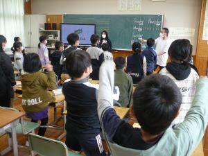 今日5年生は、外国語の学習がありました。外国語専科の江藤先生とALTのアレタ先生と一緒に、外国語の学習に笑顔で楽しく取り組んでいます。