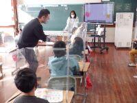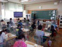 今日、4年生は国語(書写)毛筆、5年生は家庭科の学習がありました。4年生は、『竹笛』という文字の特徴と、筆の使い方のポイントを確認しながら学習を進めていました。分かりやすくするために、「穂先は左上、トン・スー・トン」という言葉をつかって学習に取り組んでいました。5年生は、家庭科の学習で「ごはんと味噌汁つくり」に取り組んでいました。映像を見ながら、米の測り方や洗い方について確認をしていました。それぞれの学年で集中して学習に取り組む丸野っ子でした。