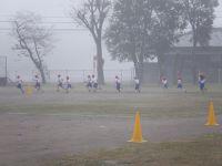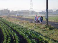 今日の登校の様子です。今日も霧が深い通学路でしたが、子どもたちは1列登校ができていました。丸野愛の中心である【自分の命】を守り、安全に登校できた丸野っ子でした。