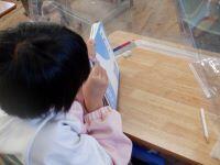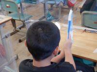 今日1年生・2年生は算数の学習がありました。1年生は、12-7の計算をブロックを使って考える学習に取り組んでいました。12を10と2に分けて、7をひくには、どちらから引けばよいのかを考えていました。実際にブロックを使って、10から7をひいて答えを出していました。2年生は、長方形をおって作った四角形の角の形や辺の長さを調べていました。角の形は直角、辺の長さも同じでした。となると・・・その四角形は『正方形』というように四角形の種類を学んでいました。