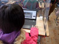 今日3年生は道徳、4年生は算数の学習がありました。3年生は、「公平に接することはどうして大切なのか。」について学んでいました。ジャムボードの付箋機能を使って、自分の考えを書き込んでいました。一人ひとりが、自分なりの考えをしっかりともっていました。4年生は、「図に書いて順にもどして考える。」という学習をしていました。問題文の読み方と図への表し方のポイントについて、頷きながら解説を聴く4年生の丸野っ子でした。