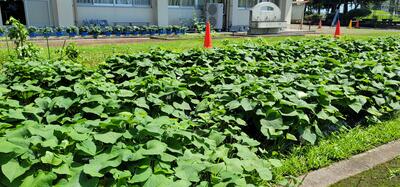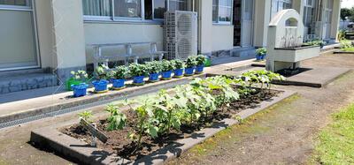 2年生の花壇にはたくさんの「日陰(ひかげ)」もあり、太陽の光の強さが伝わります。