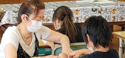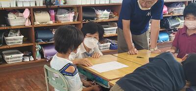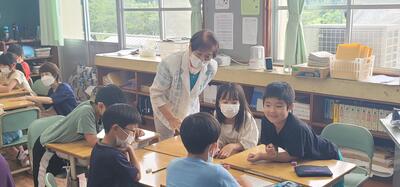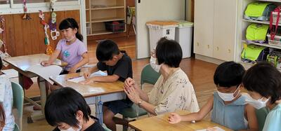 来校された4名の方は、汗をふきながら、子供一人一人の机に寄り添って、もちろん担任も一緒に、ていねいに指導されました。