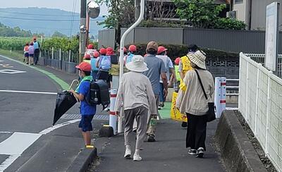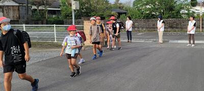 今朝も、子どもたちの元気に登校する姿が見られ、その姿を地域のサポーターが応援しています。あいさつという形で。