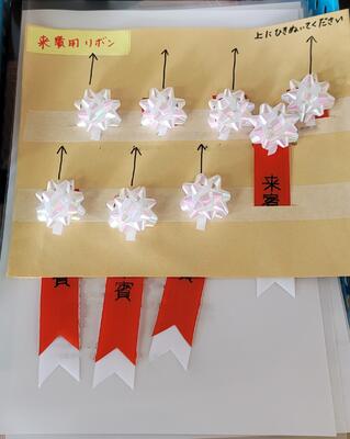 これらは、運動会当日、来賓にお渡しする来賓用の「リボン」や「ペットボトル」