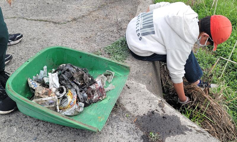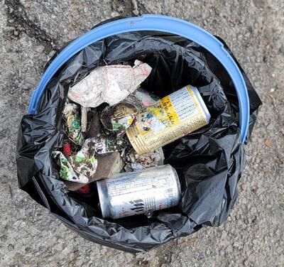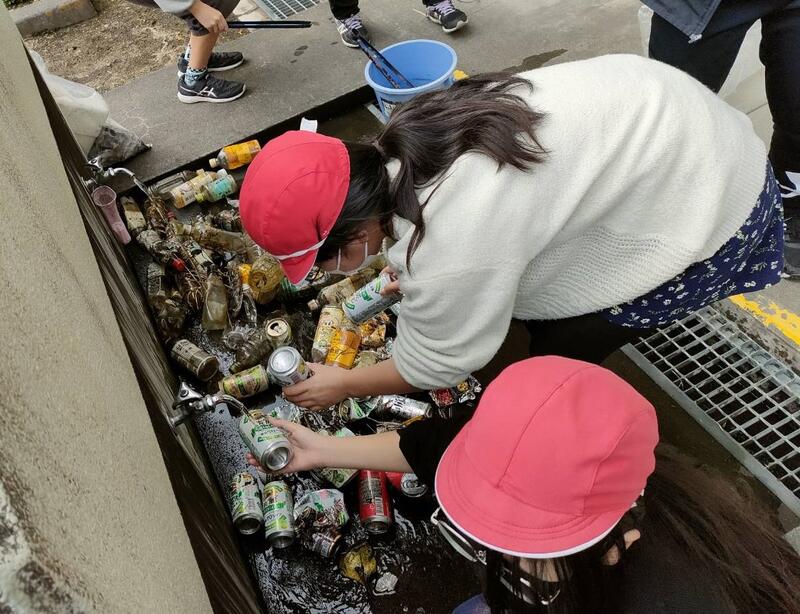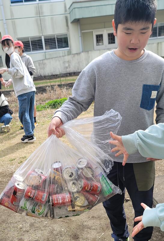 * 実は拾った空缶・ペットボトル等は学校に捨てるところがなく、もちろんですが、回収されることもない(市のルールで、学校はゴミ回収のシステムが一般と異なる)ため、本校の職員が、写真の中の大量のリサイクルゴミをもち帰り、適切に処分しました。
