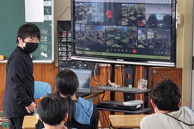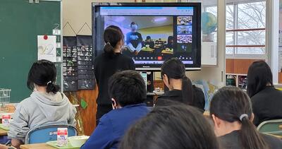 画面の先・・・6年生に質問する他の学年の子どもたちもよく考えて質問しています。いろいろと工夫してくれました。