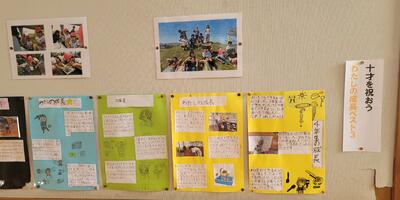 ろうかの掲示物にも一年間の思い出がつまっています。