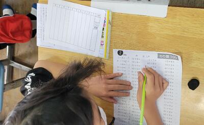 この計算は簡単な四則計算を、限られた時間内で解答していきます。やり方は学年によって工夫しています。