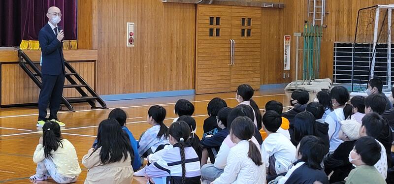 新任式では、「おはようございます」のあいさつの後、4名の先生方の自己紹介を聞き、全校児童そろっての「よろしくおねがいします」と元気よい声が体育館に響き渡りました。その中で、6年生児童を中心に、丸野愛のことや、丸野の子どもたちが、がんばっている3つ(あいさつ、靴箱の靴並べ、清掃)のことを新任の先生方に紹介しました。