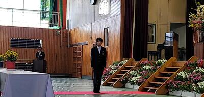 その式の中で、本校卒業生が、新入生の生徒代表としてとてもとてもりりしく、自分の考えを述べていました。