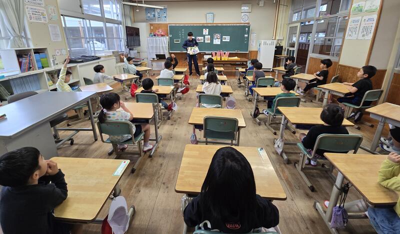 その後、教職員の紹介。そして最後に読み聞かせボランティア志和っ池による「大きな絵本を使った読みきかせ」も行われ、充実した60分間でした。