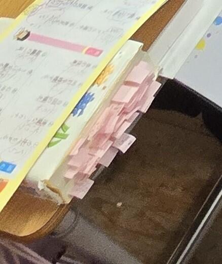 国語辞典で調べたところに「ふせん」をはっていますね。