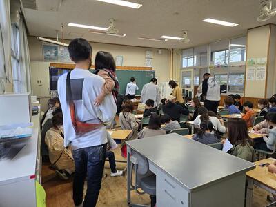 ある学級では、親子で「つないで、つないで一つのお話」という学習をすすめ、結末にたどり着くと拍手が沸き起こるなど、日頃の「楽しい」授業を垣間見ることもできたようです。