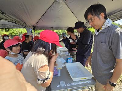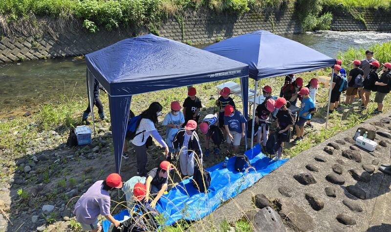 川辺では、都城市や保健所の職員の皆様がテントを張って私たちを待ってくれていました。