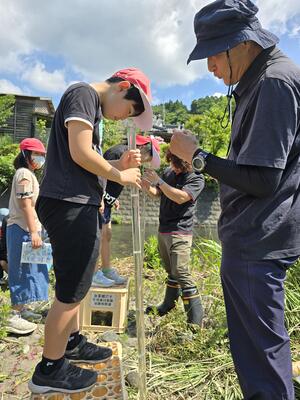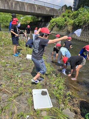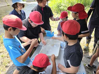 さて、生き物といえば、4年生が丸谷川で「水辺の生き物調査」をしてきましたよ。