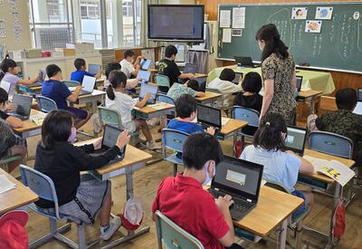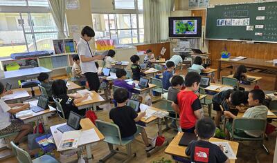 1年生も先生もタブレットを使いながら・・・