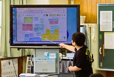 アプリの特性を活用した発表(4年生)も行い、タブレットを道具として活用し