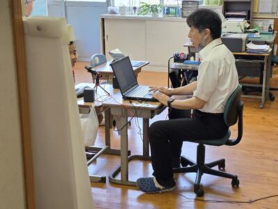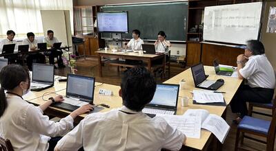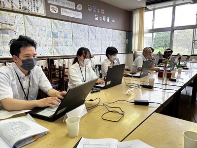本校では、ふだんからこのようなスタイルの研修会を行っており、ペーパレス(印刷業務や印刷時間、消費紙の削減)化を行っています。