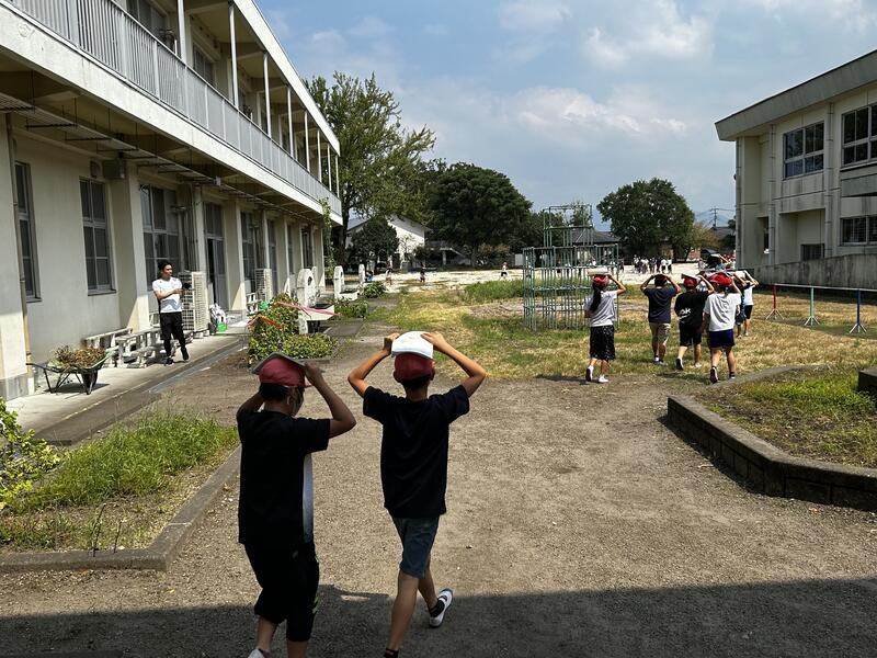 熱中症防止のため、この後すぐ教室に戻り、放送で担当の先生より話がありました。地震はいつ、どこで起きるか分かりません。今回の訓練を活かして、有事の際は自分の命をしっかりと守れるよう、落ち着いて行動してほしいと思います。