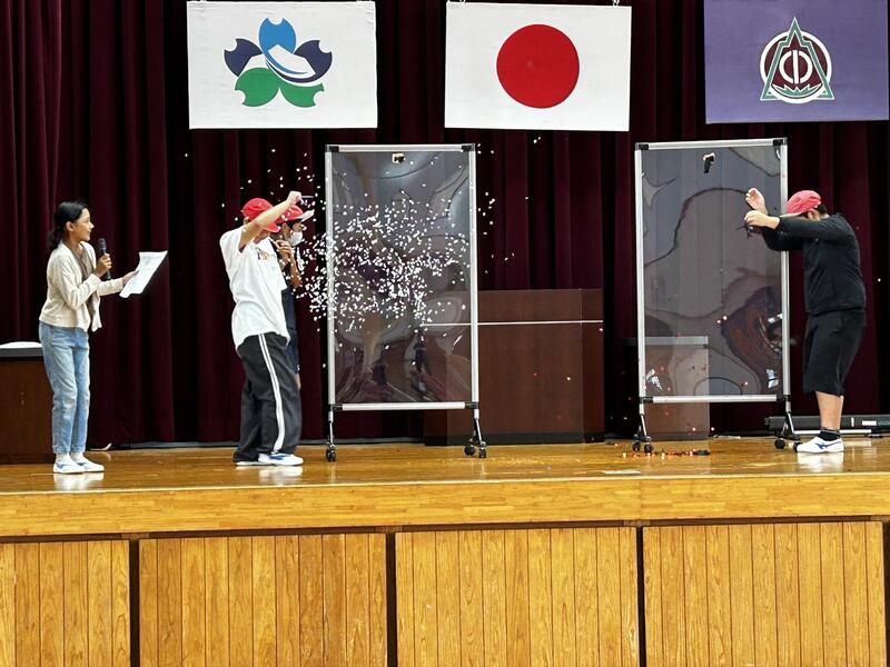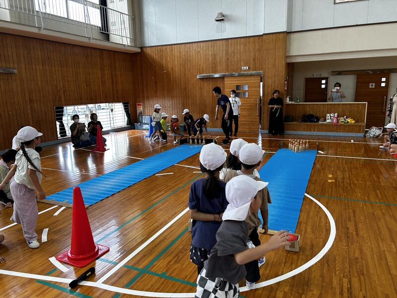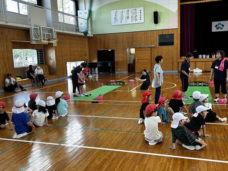 スカットはグランドゴルフのようなもので、穴を目掛けてスティックでボールを打ちます。はじめは、なかなか難しい様子でしたが、ゲストティーチャーの皆さんの指導のもと、少しずつ上手にできるようになっていきました