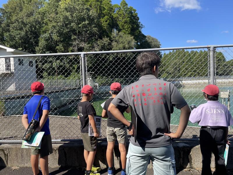 説明を真剣に聞く子ども達。最終処理場は志和池の広大な土地にあるのです。