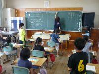 1年生は、学習の「めあて」を書く場面です。黒板に掲示された拡大したノートを見ながら、それぞれが集中して、自分のノートに、1学期学習した「ひらがな」を使って書く姿がありました。2学期も更に成長している1年生でした。