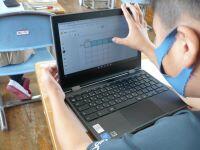 5年生は、縦6cm・横8cmの長方形を、どのように並べると正方形ができるか、chromebook(クロームブック)を使って、画面上で正方形をつくっている場面です。目で見て確認しながらできるので納得していました。新しい道具も活用しながら問題を解く5年生でした。