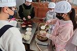 みそ汁は、煮干しの頭とはらわたを取る下準備からスタート。火にかけてしばらくすると、教室中にだしのいい香りが広がり、「おなかすいた~!」と待ちきれない様子の子も。班ごとに彩りを考えた具材を入れ、愛情たっぷりのお味噌汁が完成しました。
