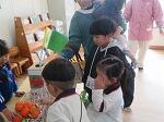 先日、1年生全員で清涼幼稚園を訪れ、2歳児さんとの「買い物ごっこ」を楽しみました。