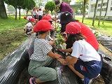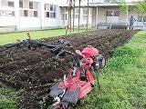 保護者の方が、子ども達が芋の苗を植える畑を耕してくださいました。