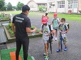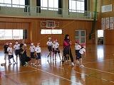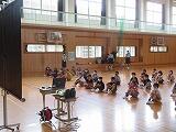まずは整列の仕方から・・・ソーシャルディスタンスを意識した整列に、子ども達はやや戸惑いぎみのようでした。