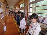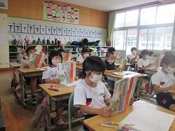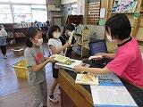 写真は、6年生が図書室を利用している様子です。マスク着用、換気、ソーシャルディスタンス等に気を付け、夏休みに自宅で読む本を借りていました。