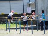 体力テスト(ソフトボール投げ)のための場づくりの様子です。
