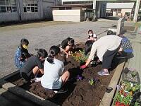 学校を彩ってくれた花壇の花の片付けをしました。「きれいに咲いてくれて、ありがとう!」
