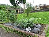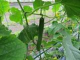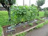 6年生の花壇に、ゴーヤーが育っています。ここ数年、こぼれ種が育っているそうですが、グリーンカーテンの役割を果たしています。