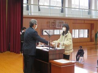 発表しました。修了証書は、校長先生が各学級に行き、代表の子どもに