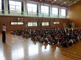 子どもたちは、真剣な表情で校長先生の話に聞き入っていました。