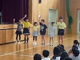 本日は全校朝会で全学年が体育館に集いました。大雨の被害もなく全校朝会を開くことができ嬉しい限りです。さらに嬉しいことがありました。6年生に転入があり、全校児童172名となりました。