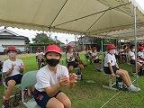 今日は雨が降りませんでした。どの学年も運動場に出て、運動会の練習をしました。5・6年生は、本番に向けて全ての競技・演技をやってみました。