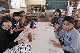 写真は、今日の給食の様子です。教室は、色鮮やかなまっかないちごの香りでいっぱいでした。
