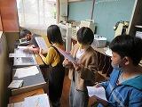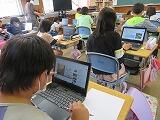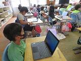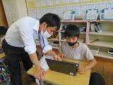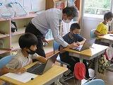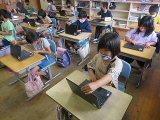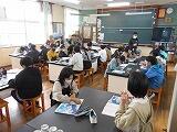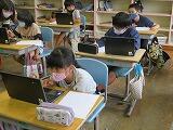 今日は、5・6年生が、端末を使って学習していました。端末の操作を先生に教えてもらったり、子ども同士で教え合ったりしながら、学習を進めていました。
