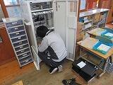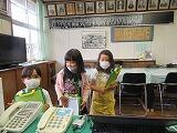 学校図書館サポーターの先生が、図書室の環境設営をしています。昨年度の5年生がもち米販売の益金の一部で購入した本の貸し出しが始まりました。